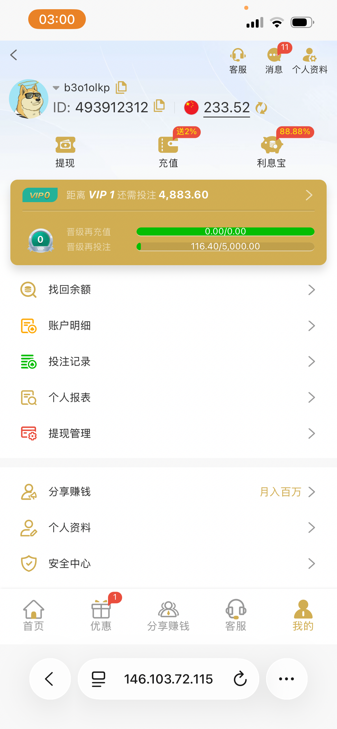 打了5000流水来回700回流可惜不能提,提了188,刷点流水彩金卡bug领取在继续打提