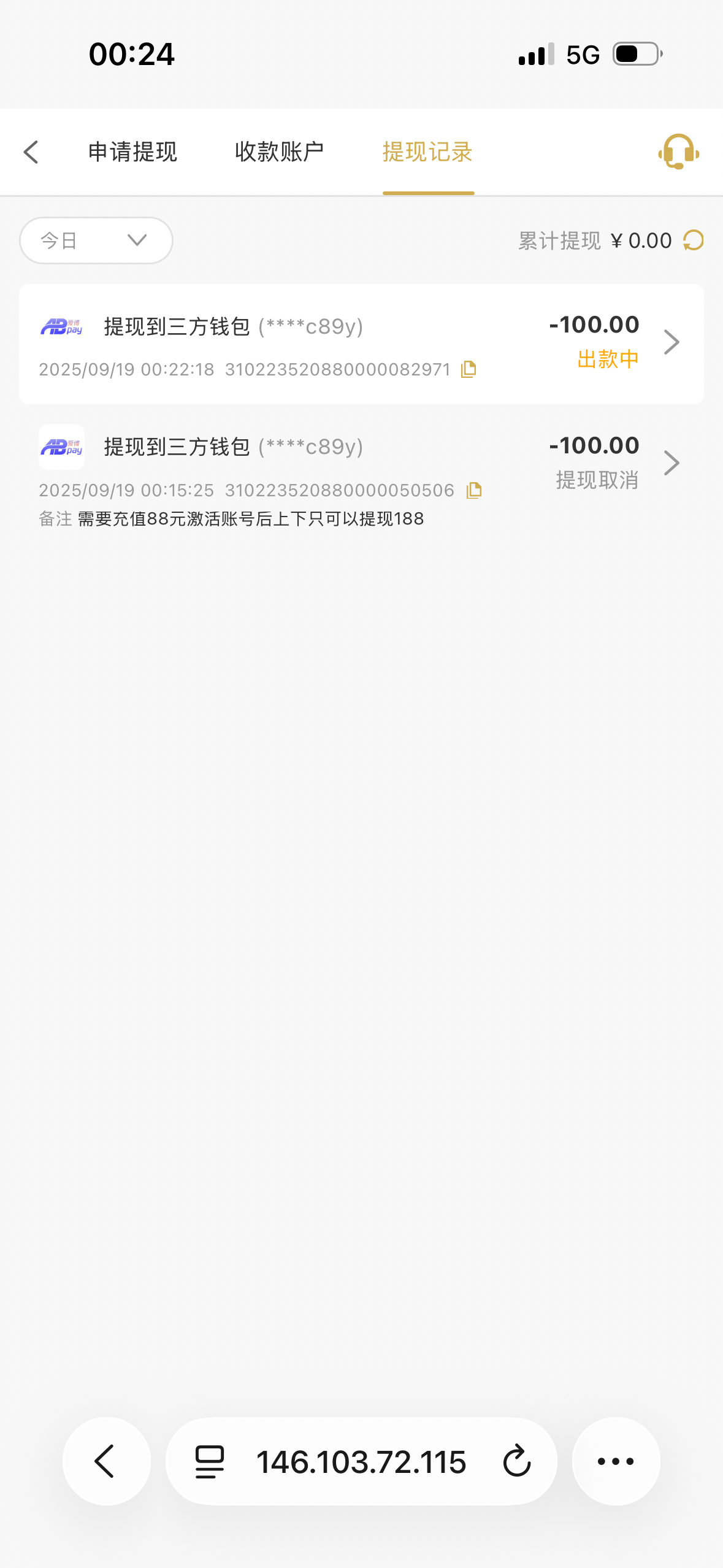 余额两百多,要充值88激活,没绑提现通道,有没有要的50