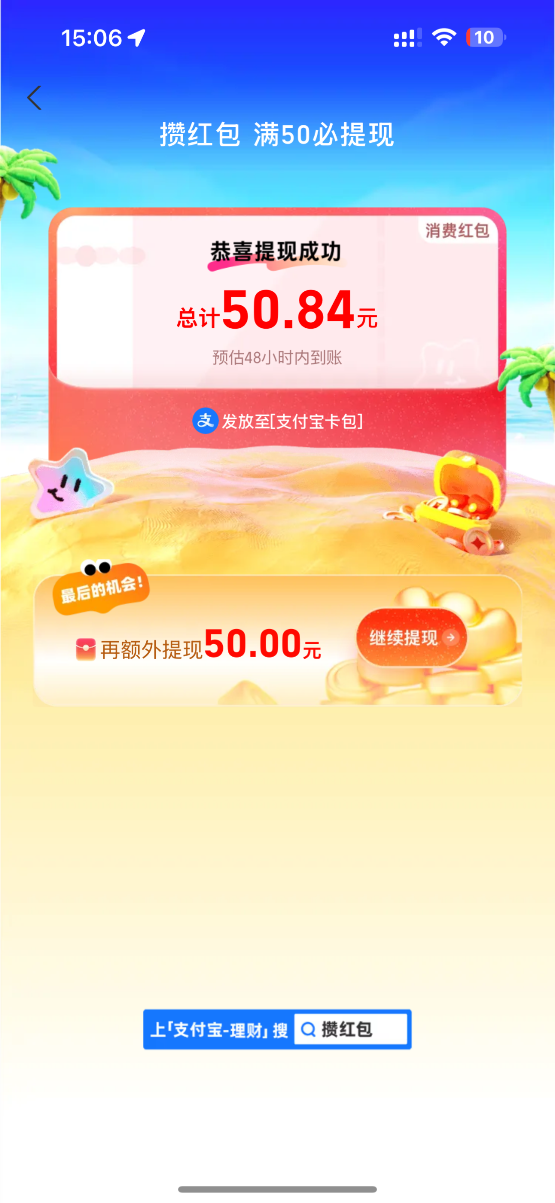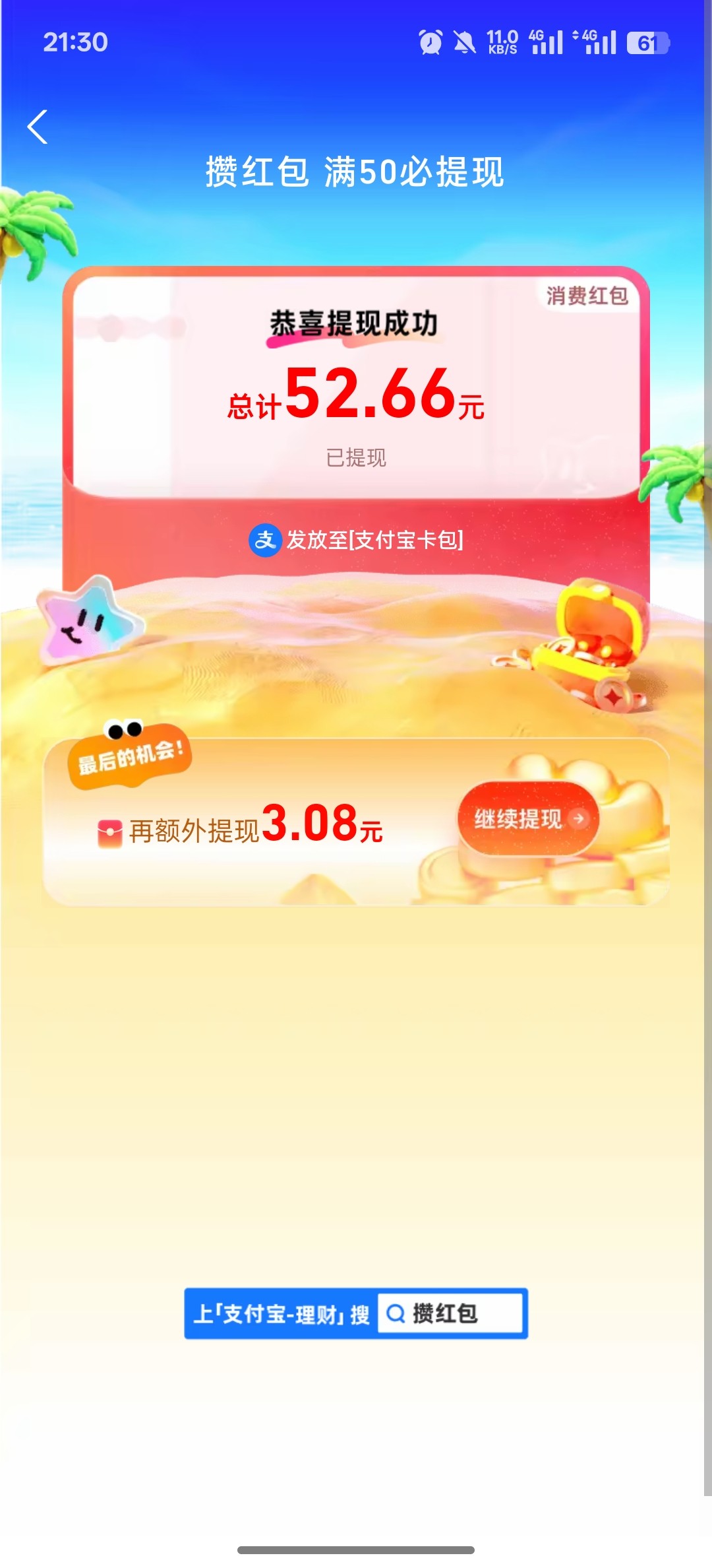 六个红包开了然后点去提现