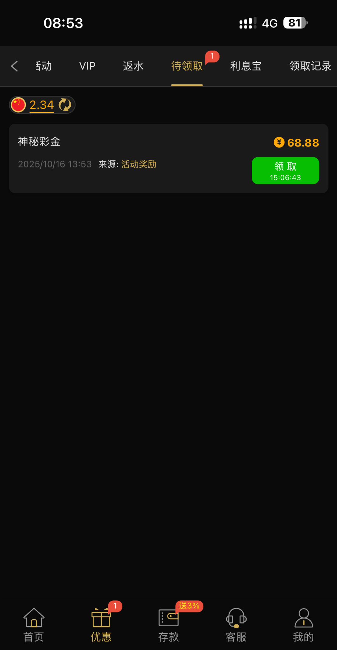 今年经常充值的台没有几个,逛了几个台子就这一个送了个神秘彩金,这个台子国庆毛都没有送08.app