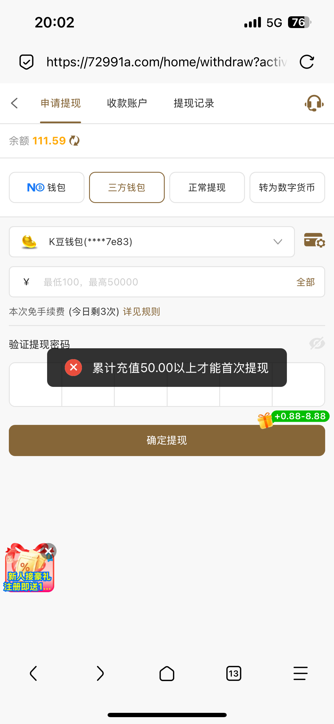充了五十出八百五都没事