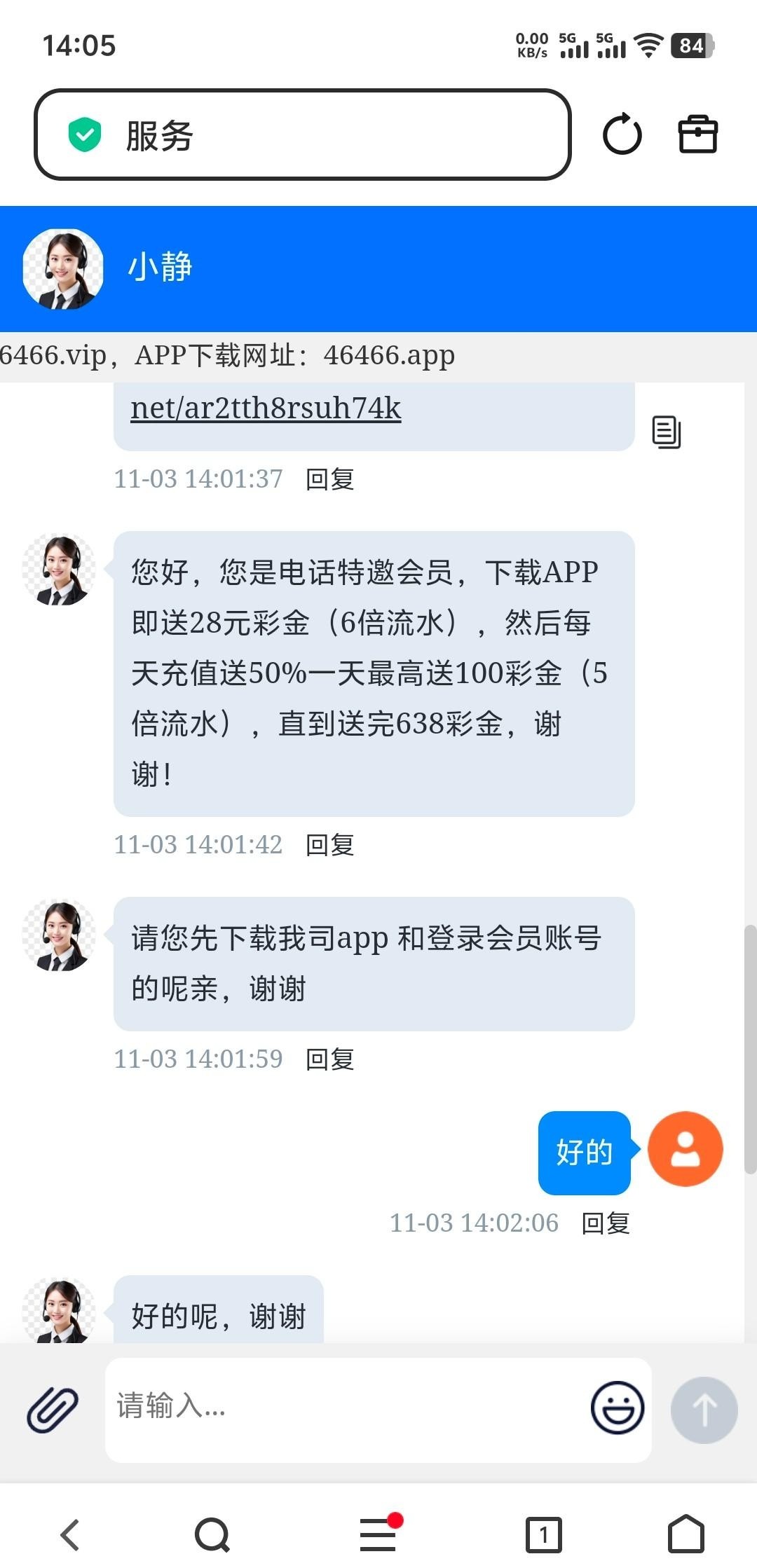 54446.vip 46466.vip 老会员找客服说电话播报回归638彩金,我的是以前注册过没存过钱,不知道新注册送不送