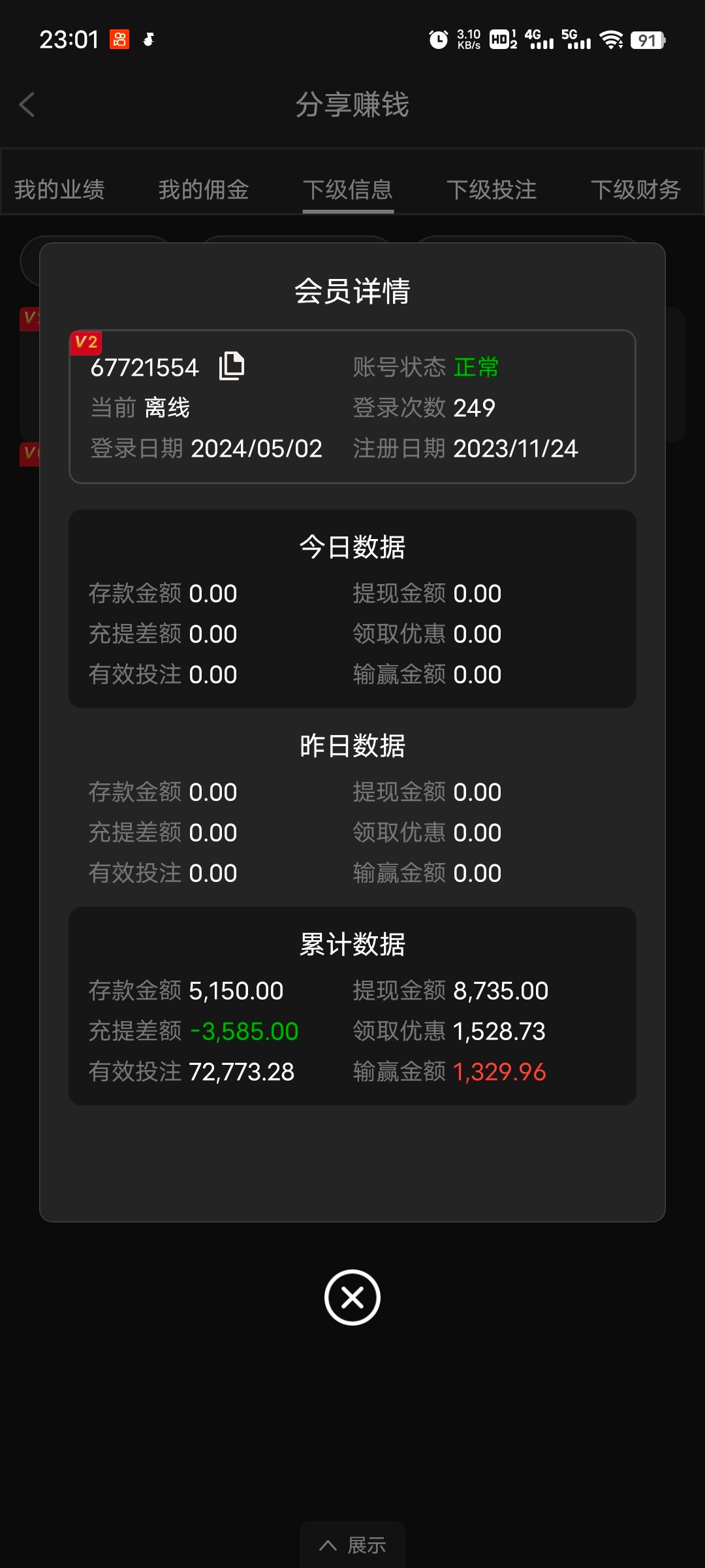 张子强 23年10月份注册的号,去年充了至少5万,今年一分钱没存过,给了88