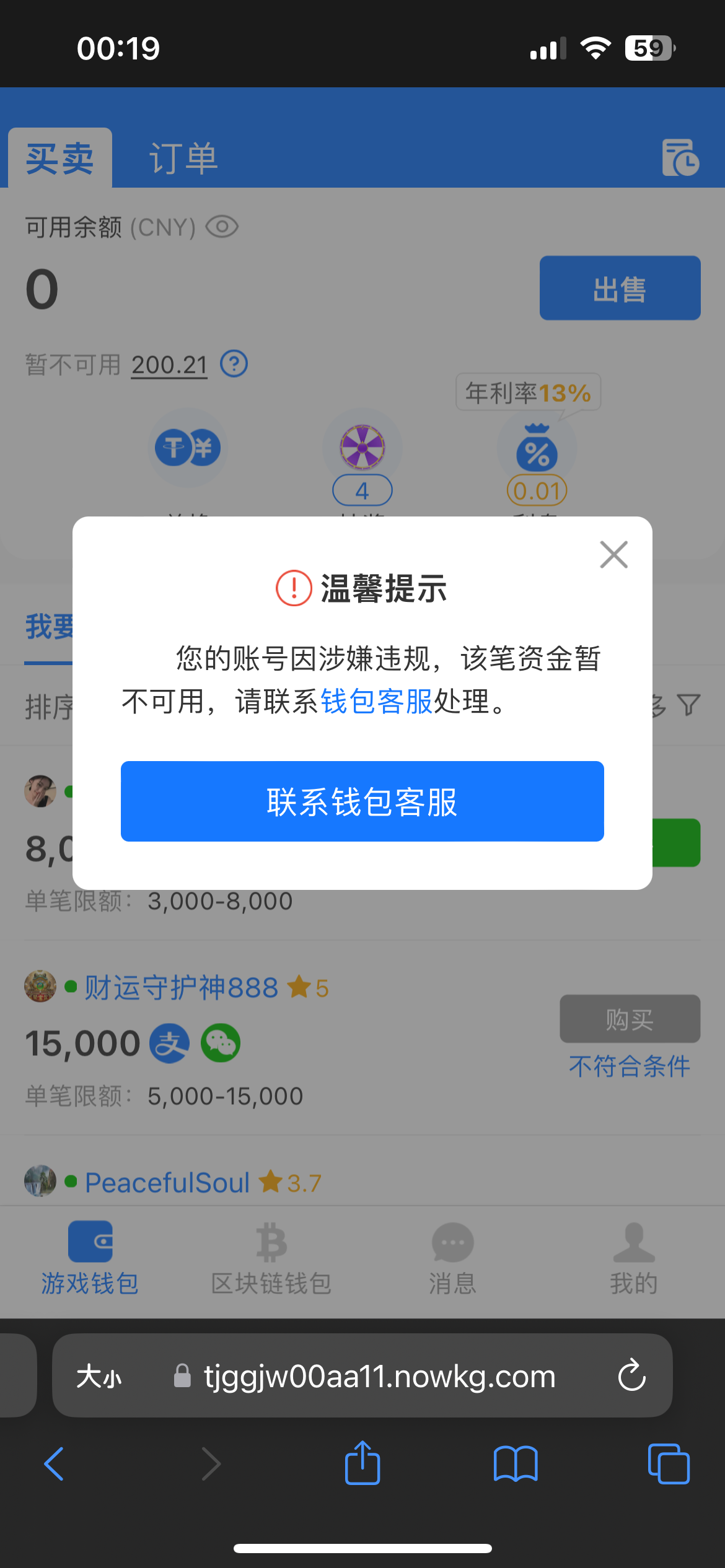 我也遇见过。不过我是开了加速器登录,好几次都这样。有一次是买币取消次数太多了。跟客服说明就行了